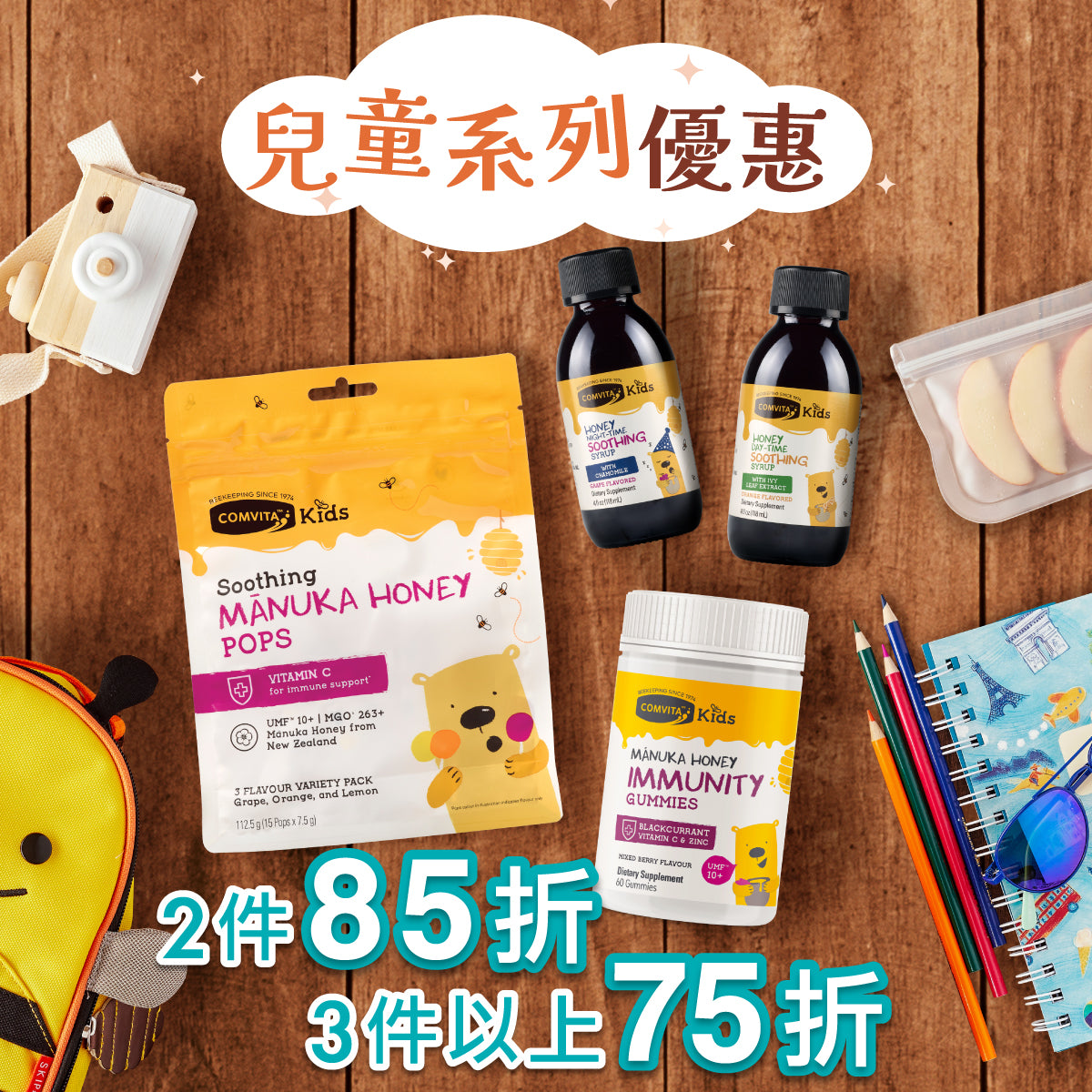 康維他™Comvita™強效傷風感冒系列匯集UMF™️10+麥蘆卡蜂蜜、蜂膠、橄欖葉精華及紫椎花精華4大有效成分,不含藥性,紓緩傷風感冒症狀,以天然純淨抗菌成分抵抗惡菌入侵,支援整體抗病能力,為身體免疫力把關,紓緩傷風感冒症狀。
